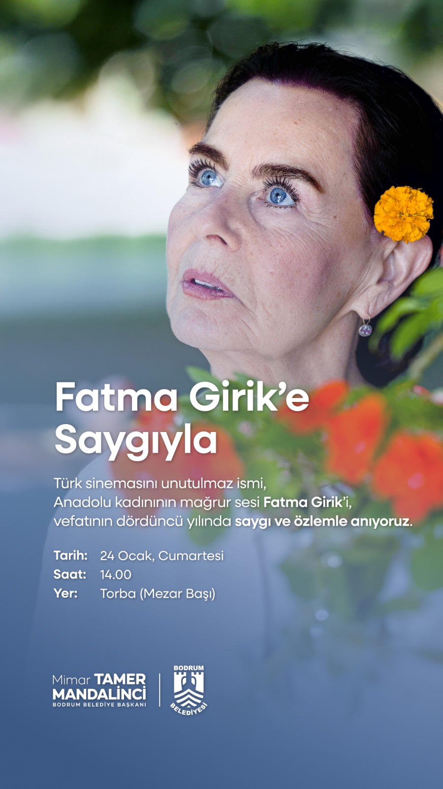 Türk sinemasının unutulmaz isimlerinden Fatma Girik, vefatının 4. yıl dönümünde Bodrum Belediyesi tarafından düzenlenecek anma programıyla anılacak.