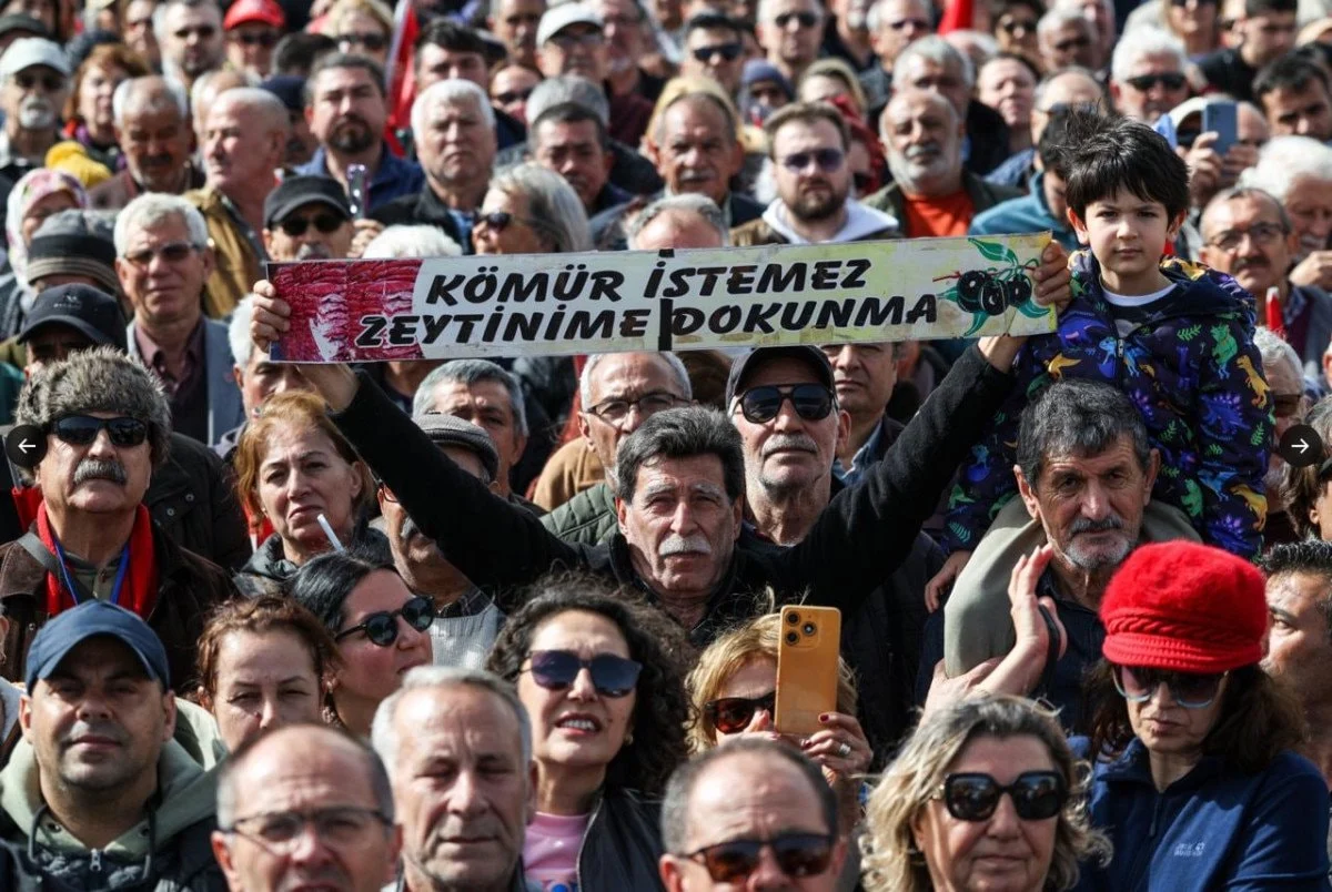 Mitingde konuşan CHP lideri Özel’in, Cumhurbaşkanı Recep Tayyip Erdoğan’ı zeytin ağaçlarının kesildiği iddiasıyla eleştirmesi, yaşanan olayla birlikte “çelişki” yorumlarına neden oldu. Miting alanında açılan “Kömür istemez, zeytinime dokunma” yazılı pankart da tartışmaların odağında yer aldı.